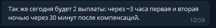 заказал вывод утром в часов 9-10,и после обеда пришло(в 13:59)